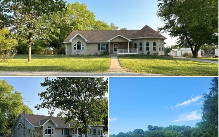 Outside, the property includes fenced pasture, mature trees, and direct access to the Little Blue River, offering opportunities for gardening, raising animals, or simply enjoying the natural scenery.