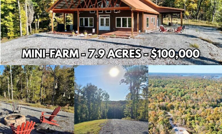 This 7.9-acre property in Cadiz, Kentucky, offers privacy, versatility, and a unique chance to purchase through live auction. Blending modern craftsmanship with rural comfort, the home sits just minutes from Lake Barkley. The land features a mix of open space and wooded surroundings, supporting hunting, gardening, recreation, or small-scale farming. Because of this balance, the property fits both productive use and peaceful relaxation. Meanwhile, major routes nearby keep Nashville, Paducah, and Fort Campbell within a convenient drive.