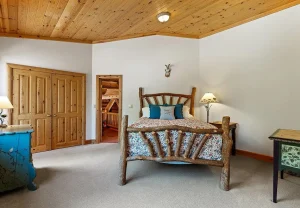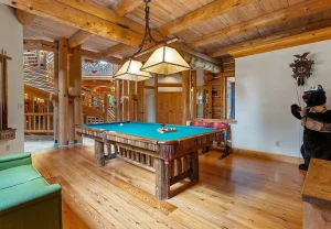 Additional interior spaces include a library, a game room, and a wine cellar, each contributing to the lodge’s sense of completeness and livability. Cozy nooks and well-crafted details throughout the home invite you to linger, unwind, and truly inhabit the space.